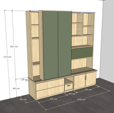 Schieberegal: Glasdtüren Mattglas, Satinato salbei hell